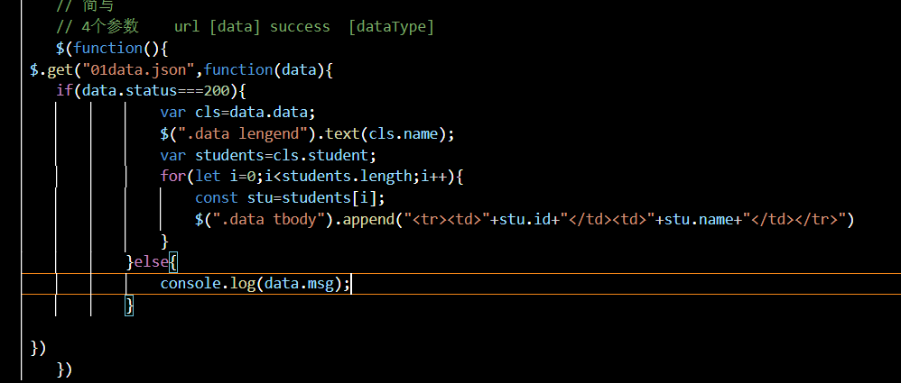 $(".data tbody").append("<tr><td>"+stu.id+"</td><td>"+stu.name+"</td></tr>")