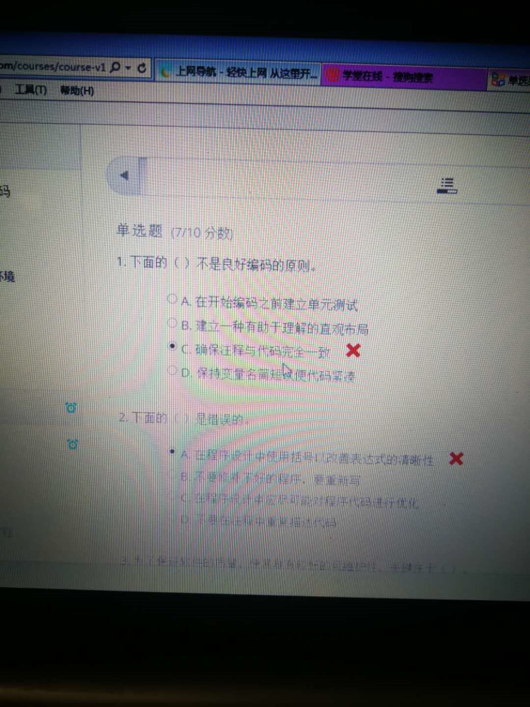 1、对学堂在线中软件工程课程第一章的学习,学习成果和测试如下所示: