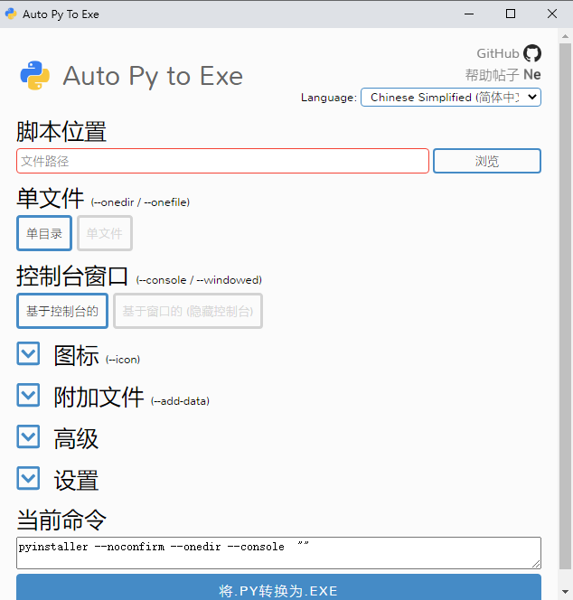 使用 该命令 auto-py-to-exe 启动工具