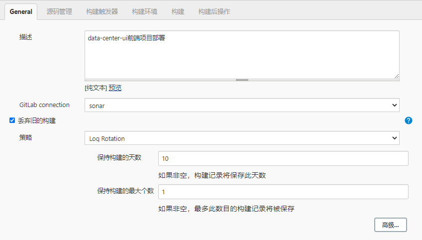 点开“高级”,将“Exec timeout(ms)”的值设为更高或0,否则Jenkins会因npm打包时间过长而超时,进而停止构建。