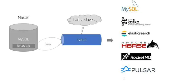 ①canal模拟mysql slave的交互协议,伪装自己为mysql slave,向mysql master发送dump协议