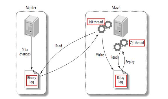③Slave服务器启动SQL thread,负责读取中继日志中的事件,在从服务器本地执行,从而保证主、从服务器数据同步