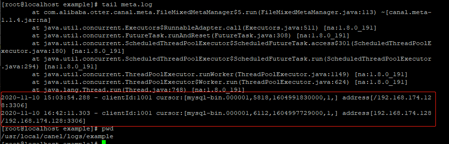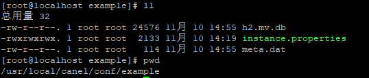 [root@localhost example]# pwd /usr/local/canel/conf/example