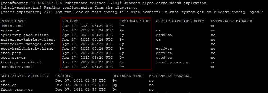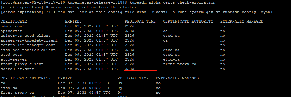 # kubeadm alpha certs check-expiration