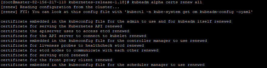 # cp -r /etc/kubernetes/pki /etc/kubernetes/pki_backup # cd /etc/kubernetes/pki # kubeadm alpha certs renew all