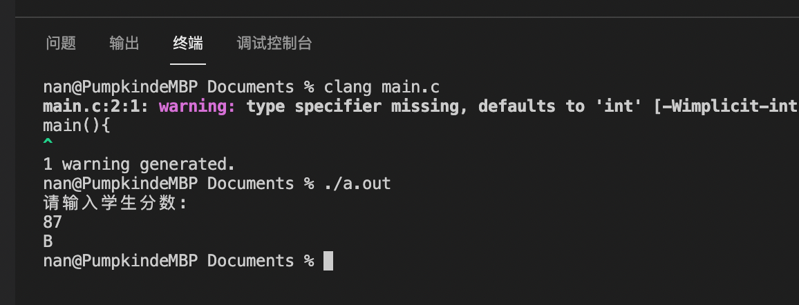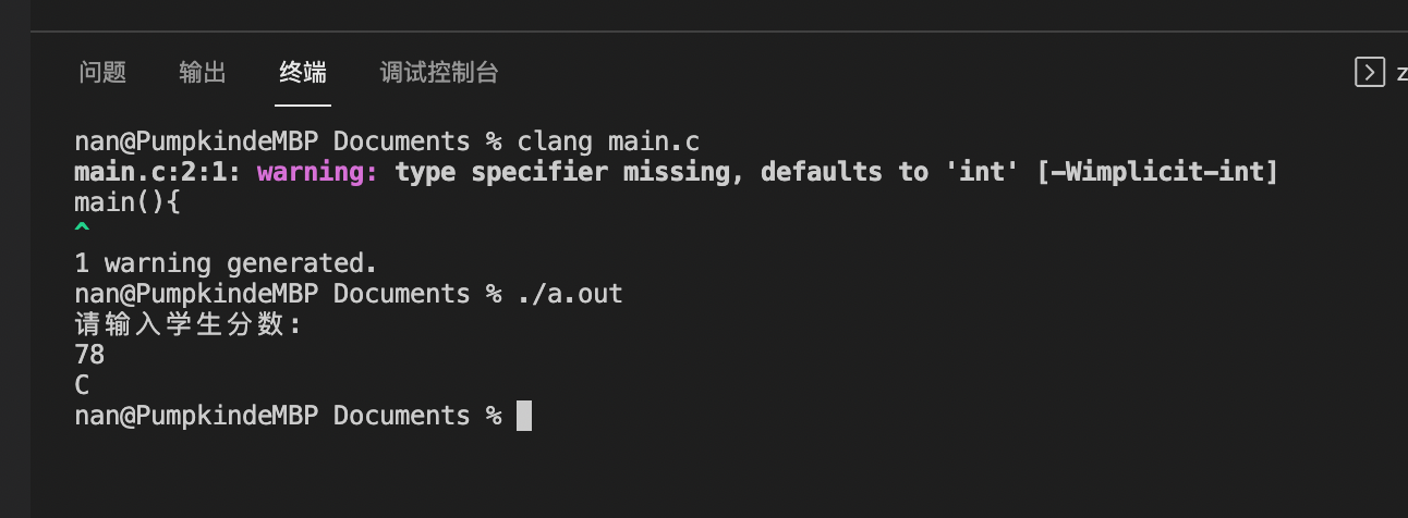 printf("请输入学生分数:\n");