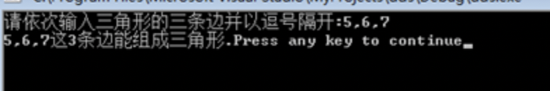 printf("请依次输入三角形的三条边并以逗号隔开:");