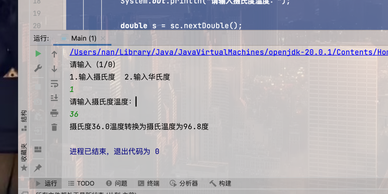 System.out.println( "摄氏度"+ s + "温度转换为摄氏温度为" + h + "度");