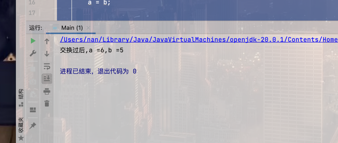 System.out.println("交换过后" + ",a =" + a + ",b =" + b);