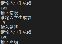 4.编写一个程序,输入任意学生成绩,如果输入不合法(<0或者>100),提示输入错误,重新输入,直到输入合法程序结束(知识点:循环语句)
