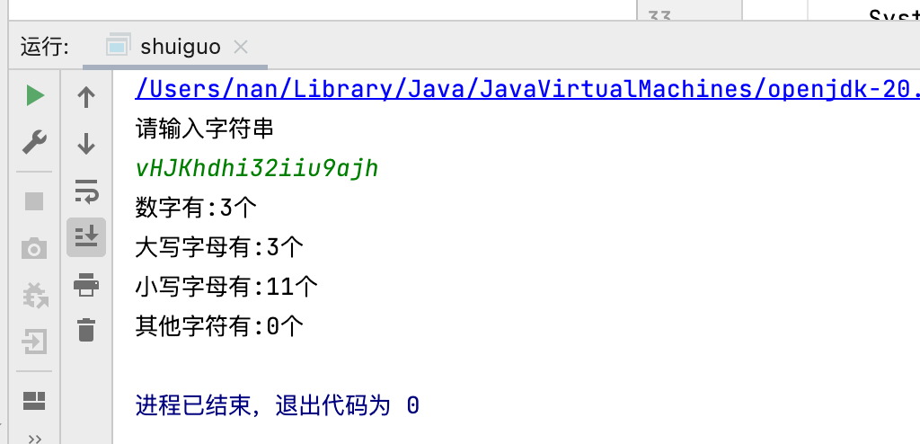 2.输入一个字符串,判断里面数字、大写字母、小写字母,其他字符的个数