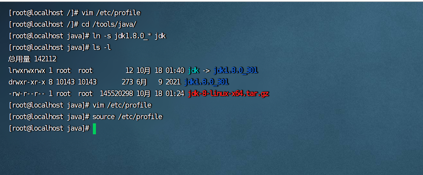 #创建链接,以便修改jdk版本的时候,解压新的jdk压缩包,重新指向该连接即可,不需要修改环境变量