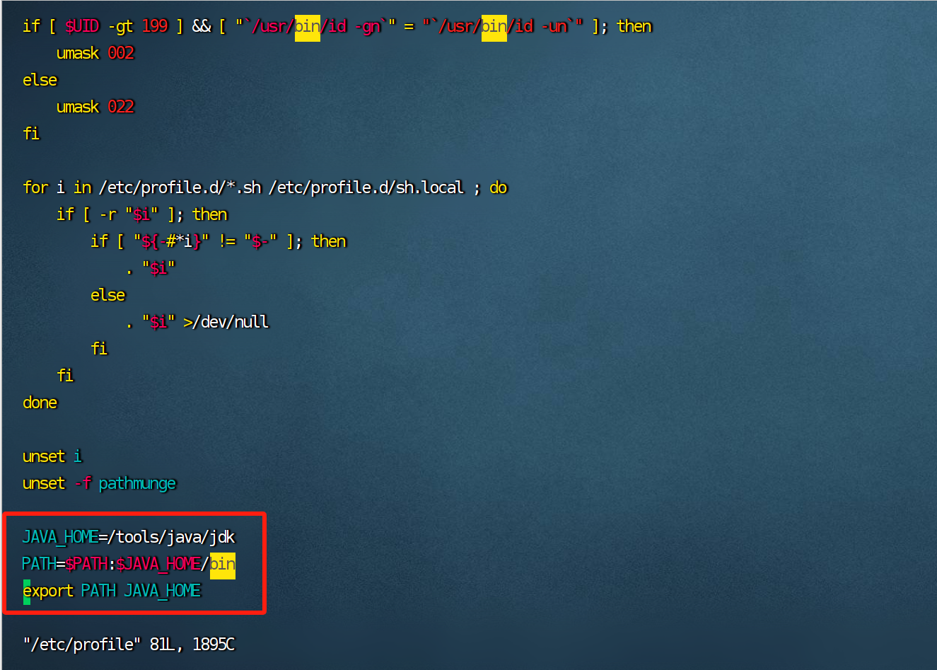 #配置全局环境变量,vim /etc/profile命令打开全局配置文件,在最后面添加命令