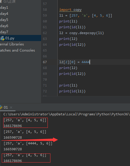 import copy #导入 copy l1 = [257, 'a', [4, 5, 6]] print(l1) print(id(l1)) l2 = copy.deepcopy(l1) #深层copy l2[2][0] = 4444 print(l2) print(id(l2))