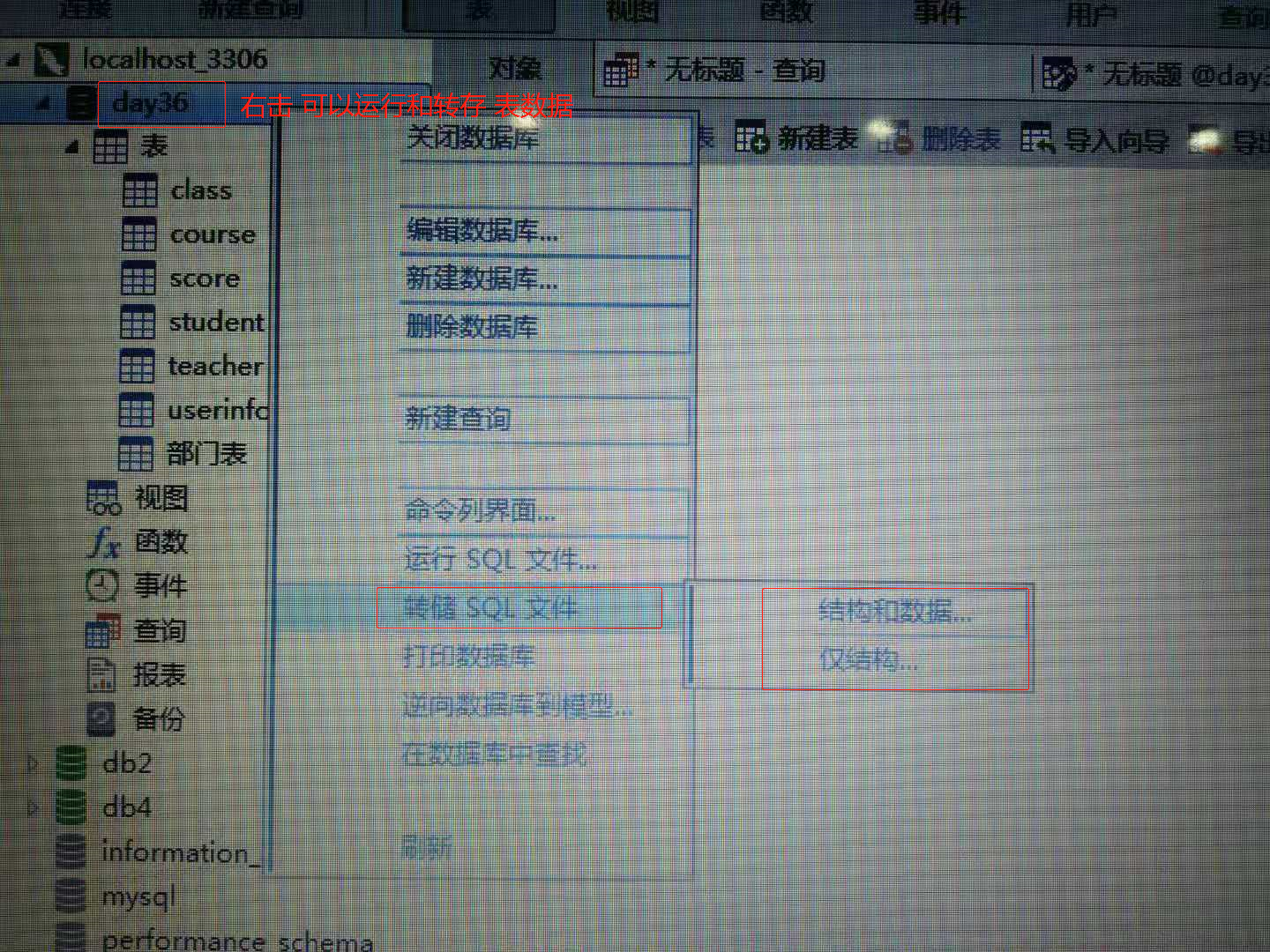 转存sql文件,可以给别人的数据库