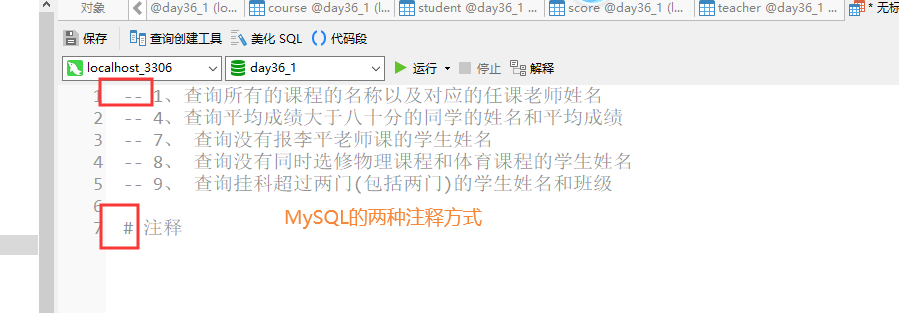 -- 或者 # 表示注释