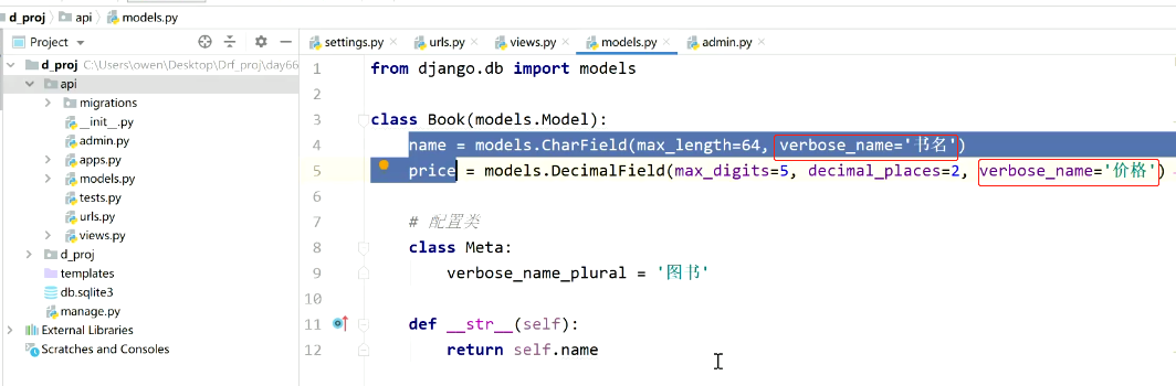 name = models.CharField(max_length=64, verbose_name='书名')