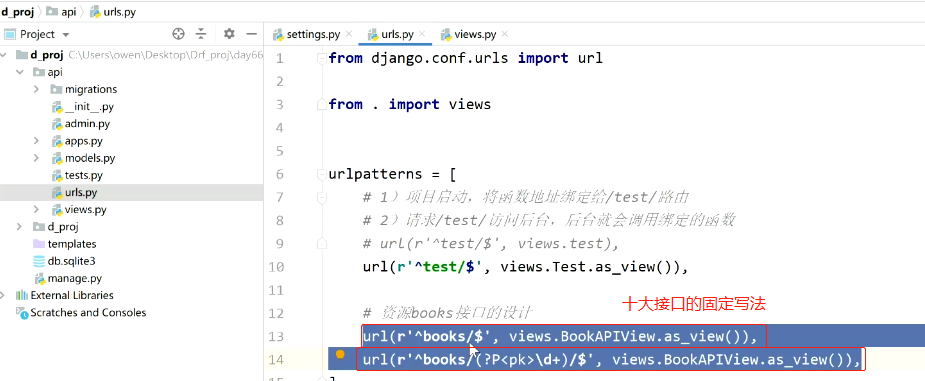 url(r'^books/(?P<pk>\d+)/$', views.BookAPIView.as_view()), # 单查、单删、单(整体|局部)改