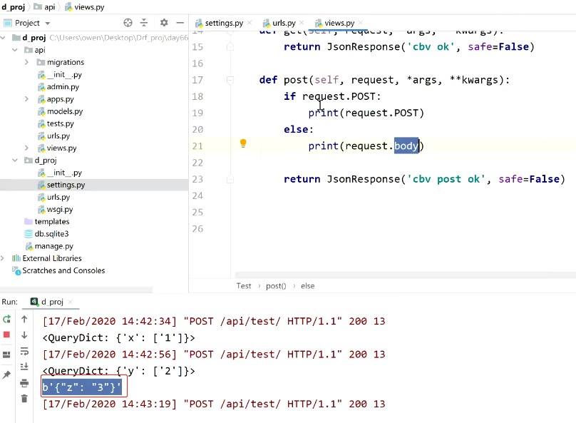 结论:django写原生的接口 不支持json数据格式