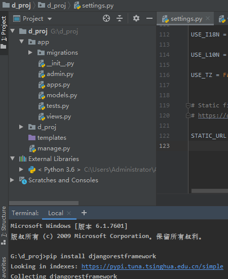 >: pip install djangorestframework
