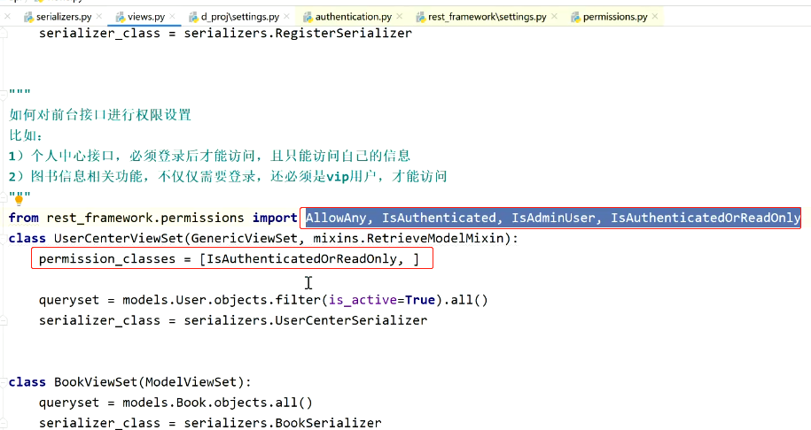 4、设置需要登录才能访问的接口进行测试(views.py)(局部配置认证组件)