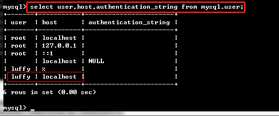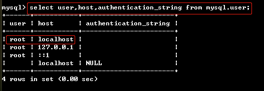 >: select user,host,authentication_string from mysql.user;