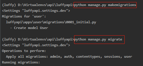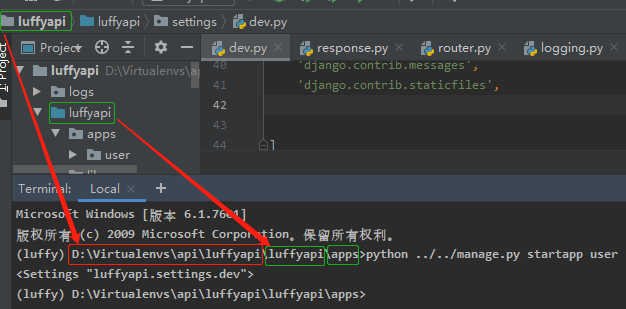 1)去向大luffyapi所在目录的终端