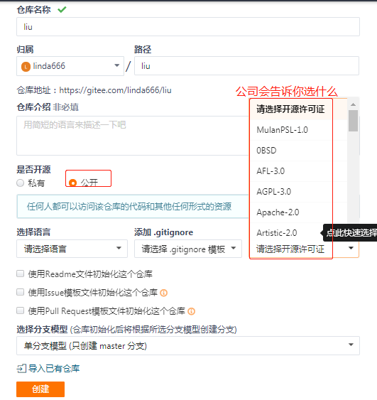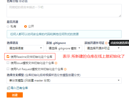 4、注意:若创建的仓库名 在你的本地不存在,就立马去本地建。