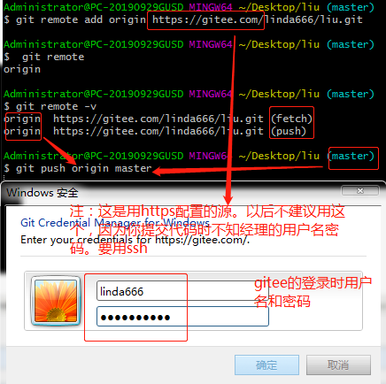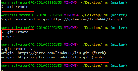eg:git remote add orgin https://gitee.com/linda666/luffyapi.git (https远程源地址)
