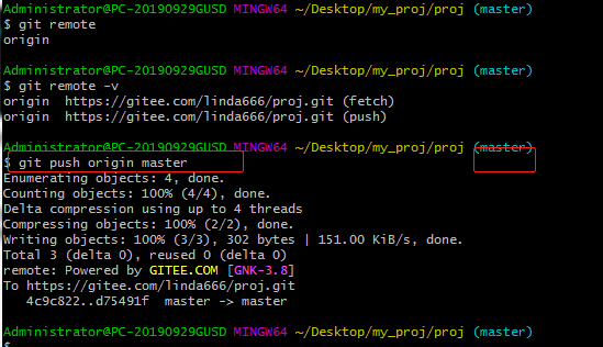 因为my_proj中的proj是从克隆的线上仓库(在线上自动初始化的),克隆时本地自己就添加了远程源