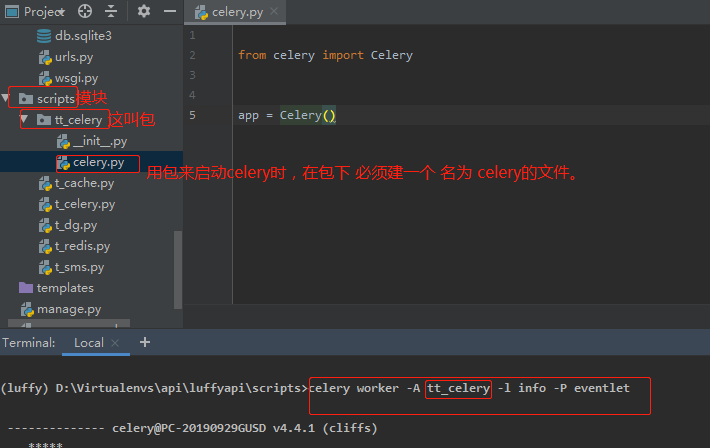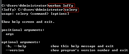 # 2)执行启动worker的命令:celery worker -A 包名 -l info -P eventlet
