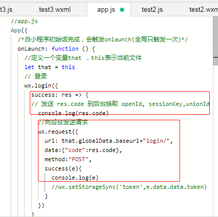 //app.js App({ /* 当小程序初始话完成,会触发onlaunch(全局只触发一次)*/ onLaunch: function () { // 登录 this.my_login() //this 就是当前app对象 }, my_login:function() { let that = this wx.login({ success: res => { // 发送 res.code 到后台换取 openId, sessionKey, unionId console.log(res.code) wx.request({ url: that.globalData.baseurl+"login/", data:{"code":res.code}, method:"POST", success(e){ wx.setStorageSync('token',e.data.data.token)// 存到本地 } }) } }) }, /**可以在全局使用 */ globalData: { userInfo: null, baseurl:"http://127.0.0.1:8000/" } })