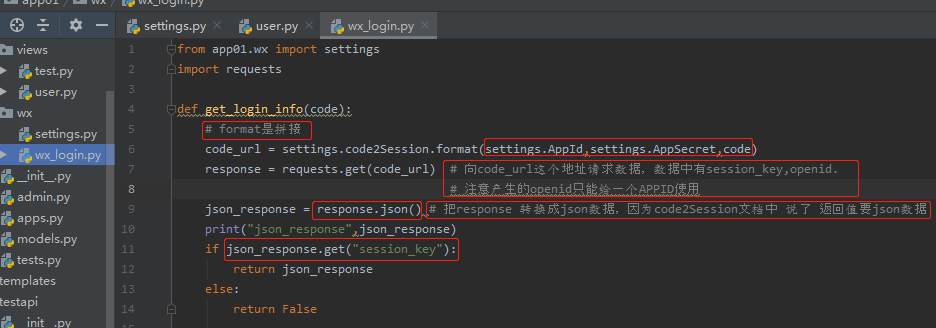 3、后端调用auth.code2Session这个接口,后台就能得到小程序的 openid和session_key,并把openid存入数据库