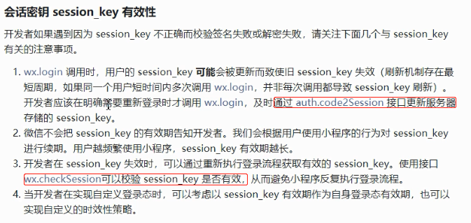 2 但是session_key是有有效期。而且session_key的有效期,不是一个固定值,他是通过用户行为来决定,session_key的有效期时间。