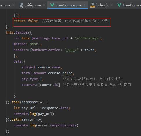 views/PaySuccess.vue ```vue <template> <div class="pay-success"> <!--如果是单独的页面,就没必要展示导航栏(带有登录的用户)--> <Header/> <div class="main"> <div class="title"> <div class="success-tips"> <p class="tips">您已成功购买 1 门课程!</p> </div> </div> <div class="order-info"> <p class="info"><b>订单号:</b><span>{{ result.out_trade_no }}</span></p> <p class="info"><b>交易号:</b><span>{{ result.trade_no }}</span></p> <p class="info"><b>付款时间:</b><span><span>{{ result.timestamp }}</span></span></p> </div> <div class="study"> <span>立即学习</span> </div> </div> </div> </template> <script> import Header from "@/components/Header" export default { name: "Success", data() { return { result: {}, }; }, created() { // url后拼接的参数:?及后面的所有参数 => ?a=1&b=2 // console.log(location.search); // 解析支付宝回调的url参数 let params = location.search.substring(1); // 去除? => a=1&b=2 let items = params.length ? params.split('&') : []; // ['a=1', 'b=2'] //逐个将每一项添加到args对象中 for (let i = 0; i < items.length; i++) { // 第一次循环a=1,第二次b=2 let k_v = items[i].split('='); // ['a', '1'] //解码操作,因为查询字符串经过编码的 if (k_v.length >= 2) { // url编码反解 let k = decodeURIComponent(k_v[0]); this.result[k] = decodeURIComponent(k_v[1]); // 没有url编码反解 // this.result[k_v[0]] = k_v[1]; } } // 解析后的结果 // console.log(this.result); // 把地址栏上面的支付结果,再get请求转发给后端 this.$axios({ url: this.$settings.base_url + '/order/success/' + location.search, method: 'get', }).then(response => { console.log(response.data); }).catch(() => { console.log('支付结果同步失败'); }) }, components: { Header, } } </script> <style scoped> .main { padding: 60px 0; margin: 0 auto; width: 1200px; background: #fff; } .main .title { display: flex; -ms-flex-align: center; align-items: center; padding: 25px 40px; border-bottom: 1px solid #f2f2f2; } .main .title .success-tips { box-sizing: border-box; } .title img { vertical-align: middle; width: 60px; height: 60px; margin-right: 40px; } .title .success-tips { box-sizing: border-box; } .title .tips { font-size: 26px; color: #000; } .info span { color: #ec6730; } .order-info { padding: 25px 48px; padding-bottom: 15px; border-bottom: 1px solid #f2f2f2; } .order-info p { display: -ms-flexbox; display: flex; margin-bottom: 10px; font-size: 16px; } .order-info p b { font-weight: 400; color: #9d9d9d; white-space: nowrap; } .study { padding: 25px 40px; } .study span { display: block; width: 140px; height: 42px; text-align: center; line-height: 42px; cursor: pointer; background: #ffc210; border-radius: 6px; font-size: 16px; color: #fff; } </style> ```