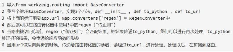 # 2 注册:app.url_map.converters['regex'] = RegexConverter 添加到flask中 app.url_map.converters['regex'] = RegexConverter
