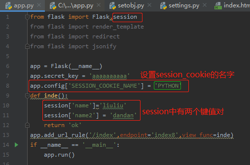 注意要设置session必须要 配置一个秘钥 app.secret_key