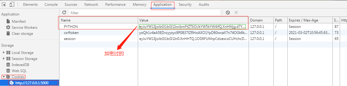 在设置cookie中的 response.set_cookie中的 val 是下图的session大字典的值和秘钥 加密后的东西 (看request.cookies)