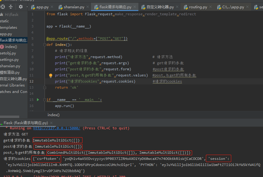 5.1 请求,所有的请求都要从flask种导入request.所有请求的东西都在request