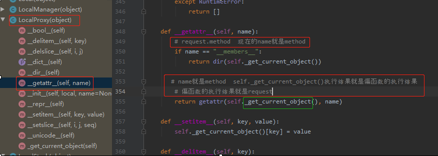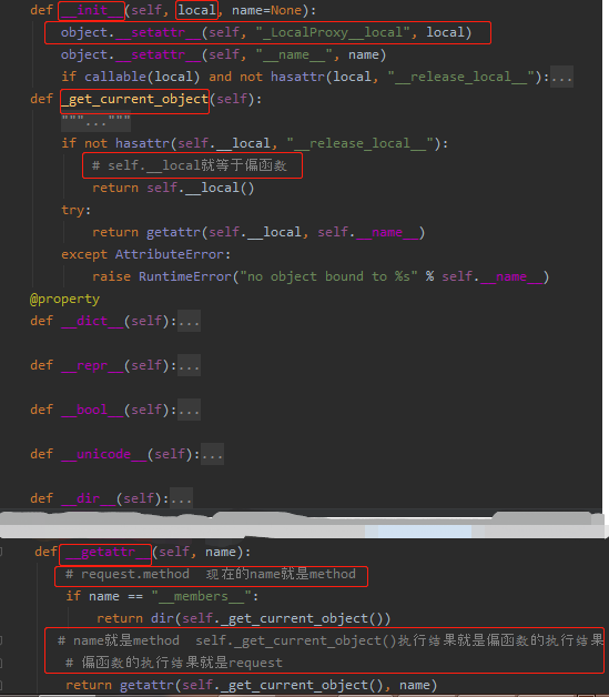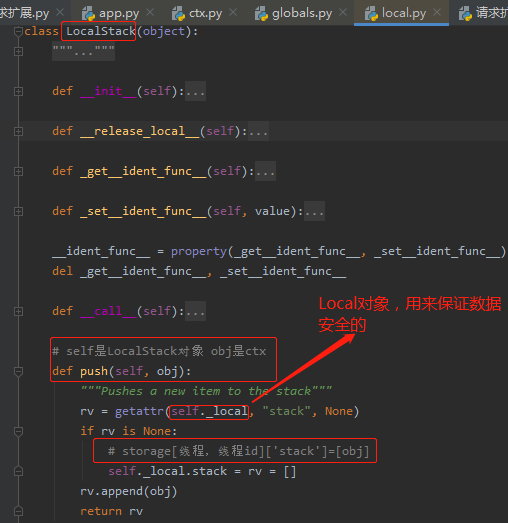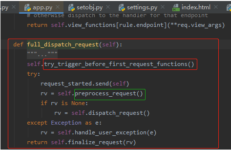 def wsgi_app(self, environ, start_response): # ctx就是RequestContext的一个对象,里面包含了请求相关的东西 1、 ctx = self.request_context(environ) error = None try: try: # 就把ctx放到Local对象里面了 2、 ctx.push() # 请求扩展以及响应函数 3、response = self.full_dispatch_request() except Exception as e: error = e response = self.handle_exception(e) except: # noqa: B001 error = sys.exc_info()[1] raise return response(environ, start_response) finally: if self.should_ignore_error(error): error = None ctx.auto_pop(error) def __call__(self, environ, start_response): return self.wsgi_app(environ, start_response) def __repr__(self): return "<%s %r>" % (self.__class__.__name__, self.name)