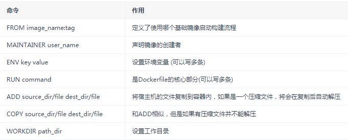 Dockerfile是 由一系列命令和参数构成的脚本,这些命令应用于基础镜像并最终创建一个新的镜像。(用来构建镜像的)