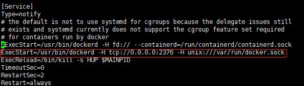 ExecStart=/usr/bin/dockerd -H tcp://0.0.0.0:2376 -H unix:///var/run/docker.sock