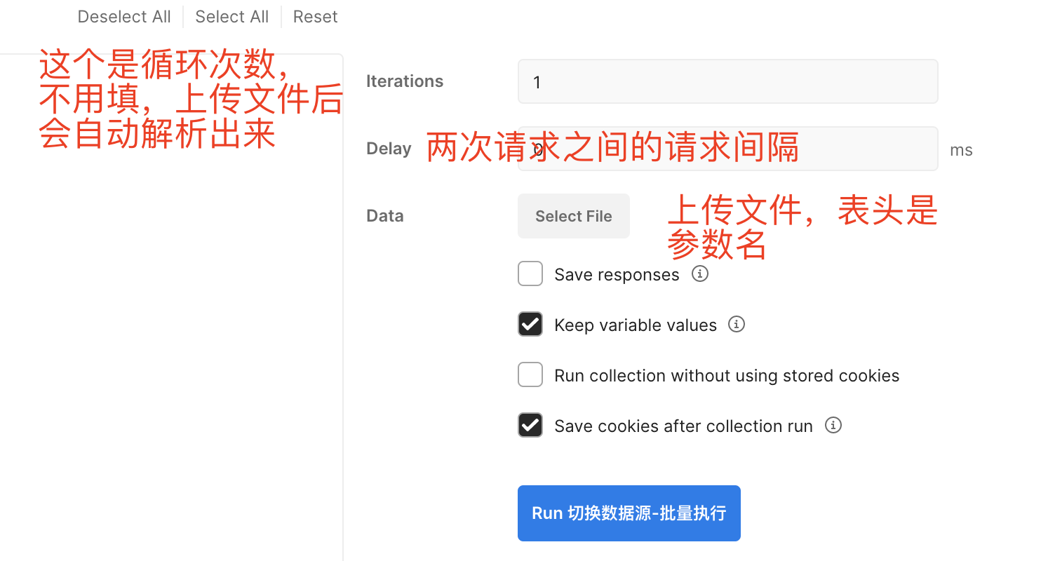 2.单击文件夹,找到 run 按钮,单击后,填写一些配置,可以上传文件,文件中要填写参数名称