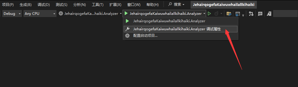开始之前,先确保被调试项目正确引用了 Roslyn 分析器项目。如本文这里有两个项目,分别是 JehairqogefaKaiwuwhailallkihaiki.Analyzer