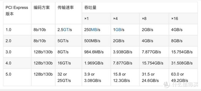 PCI Express 传输速度表格