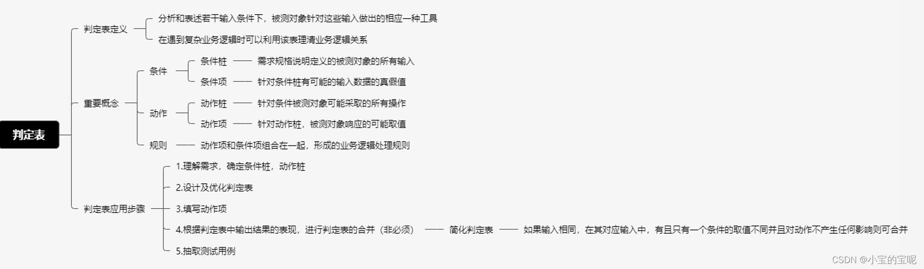 判定表法又称决策表,判定表法(Decision table)同因果图法一般也是一种表达逻辑判断的工具。