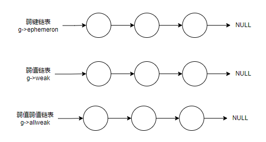 我们可以再通过一张图来回忆下,弱表不同的模式下,会放在不同的链表上,在原子阶段,会处理完所有链表上的弱表对象,其中弱键表应该是比较复杂的一种。所以,大家平时开发,在不同的场景,选择合适的弱表类型,减少 gc 在原子阶段的处理时间。