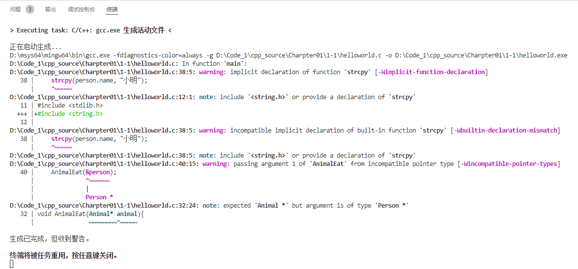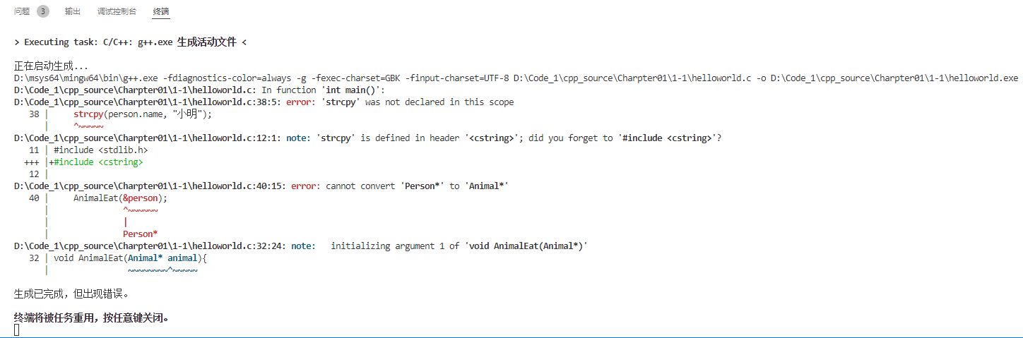 国际惯例,gcc.exe运行生成任务文件,(我这段用g++会生成错误信息,可能无法进入调试阶段,因为就是c++无法运行但是c可以运行的:))