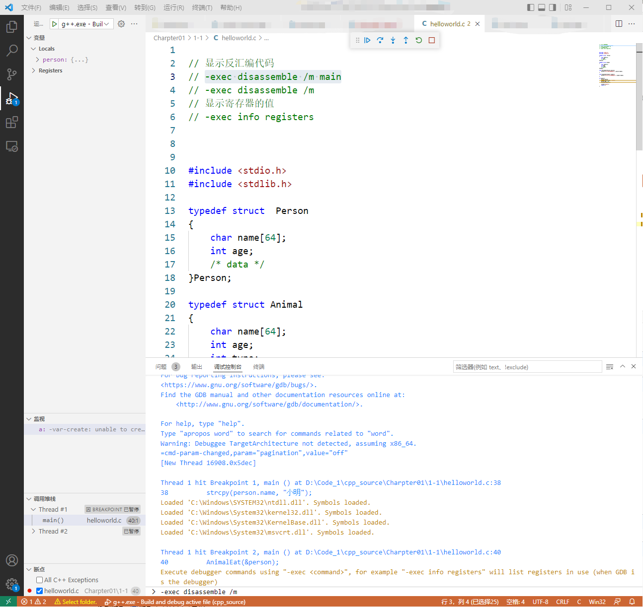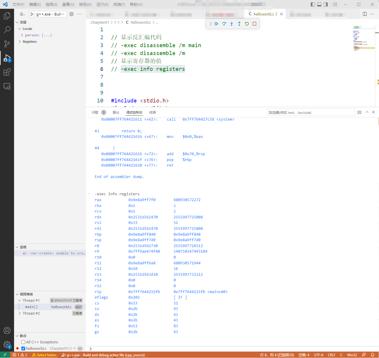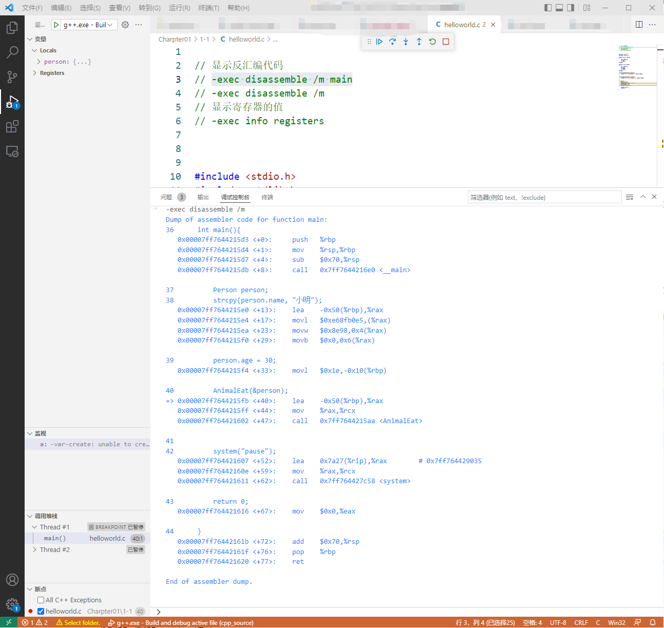 (然后VScode写c++和c的时候苦于不能看到反汇编,上网查找发现VS可以看于是去下载VS调试看反汇编,可是VS有不太能运行c,于是绞尽脑汁找VScode查看反汇编的方法)