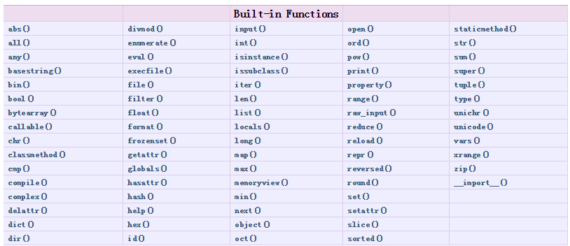 之前将关键字和内建函数给弄混淆了,现在系统的总结一下python2.7内建函数。